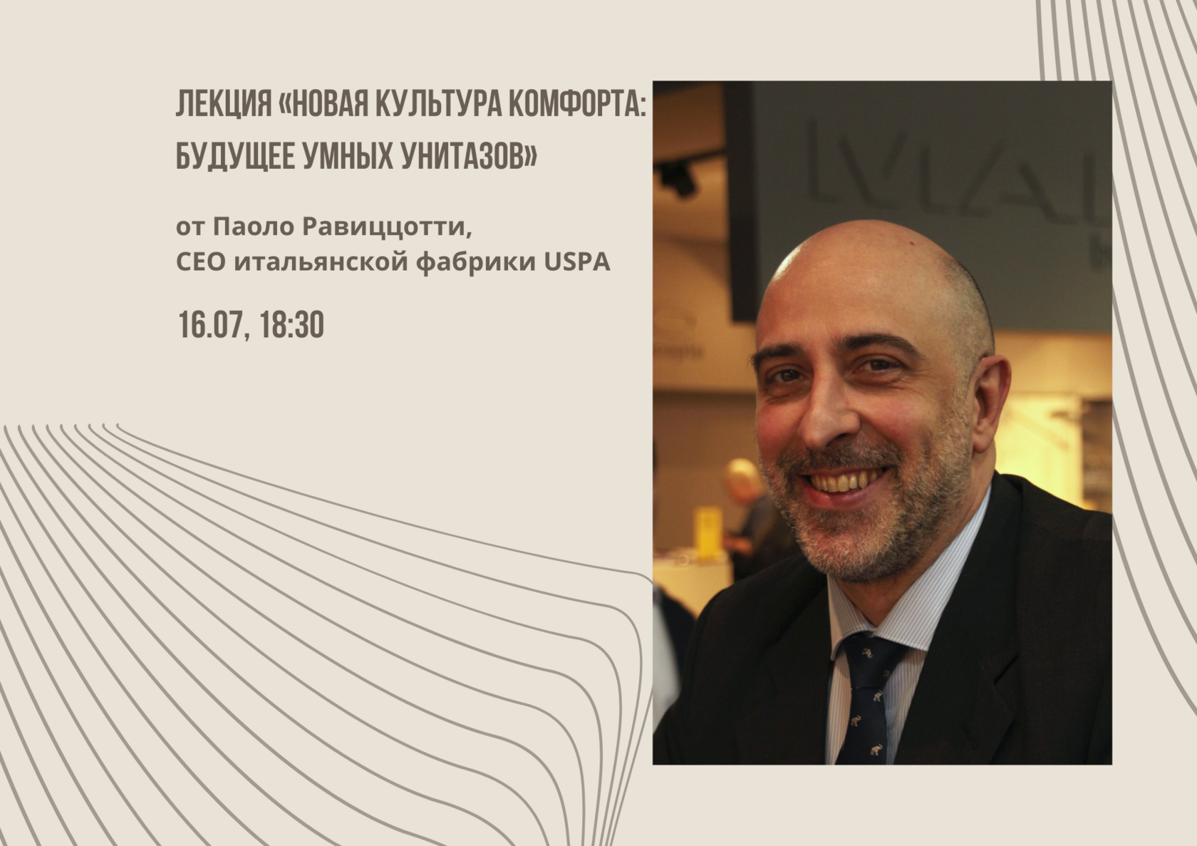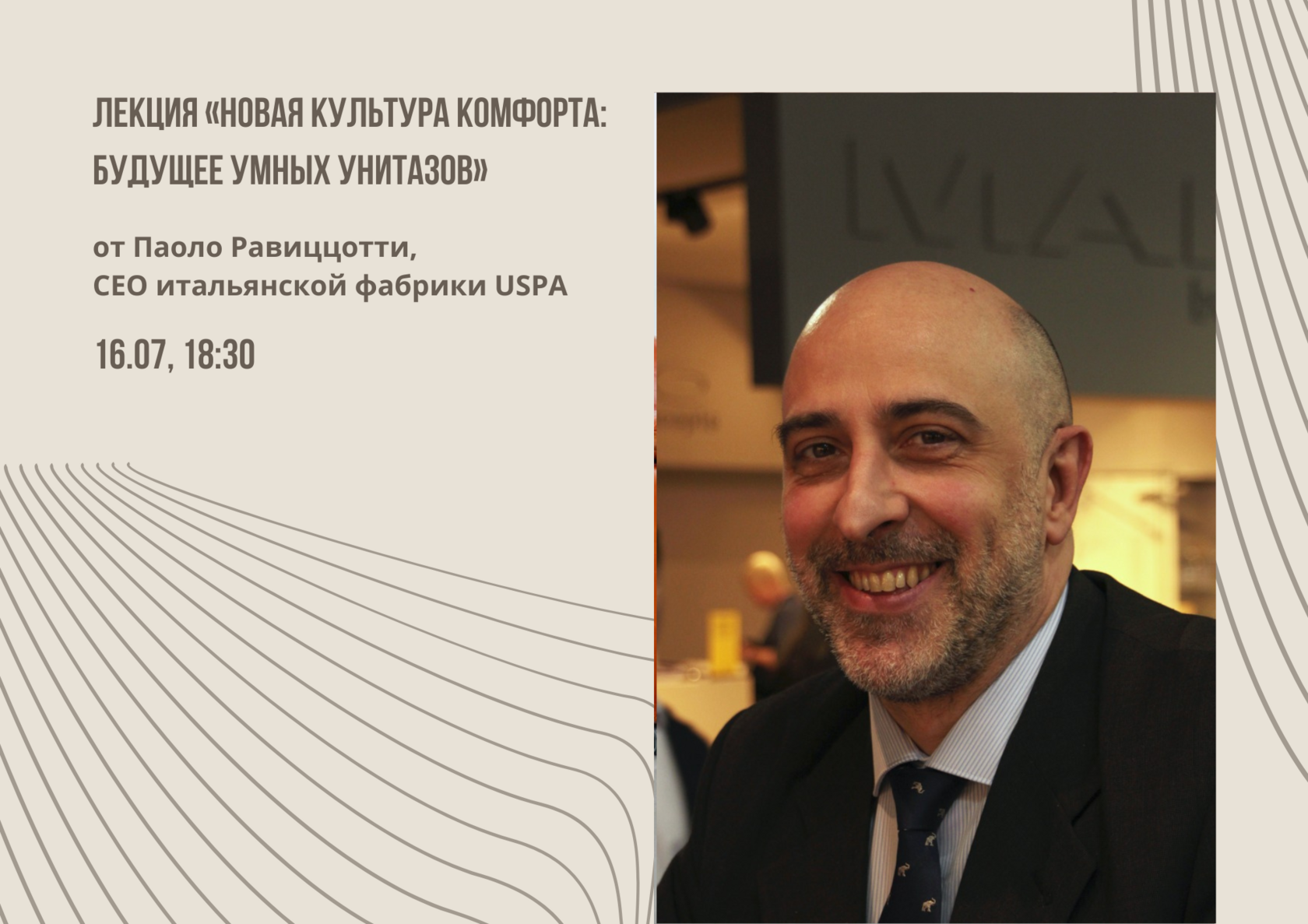 Лектор: Паоло Равиццотти — генеральный директор итальянской фабрики USPA, специализирующейся на производстве умных унитазов и электронных биде. Под его руководством бренд вывел на рынок инновационную серию Hygea, сочетающую технологии, комфорт и итальянский дизайн.